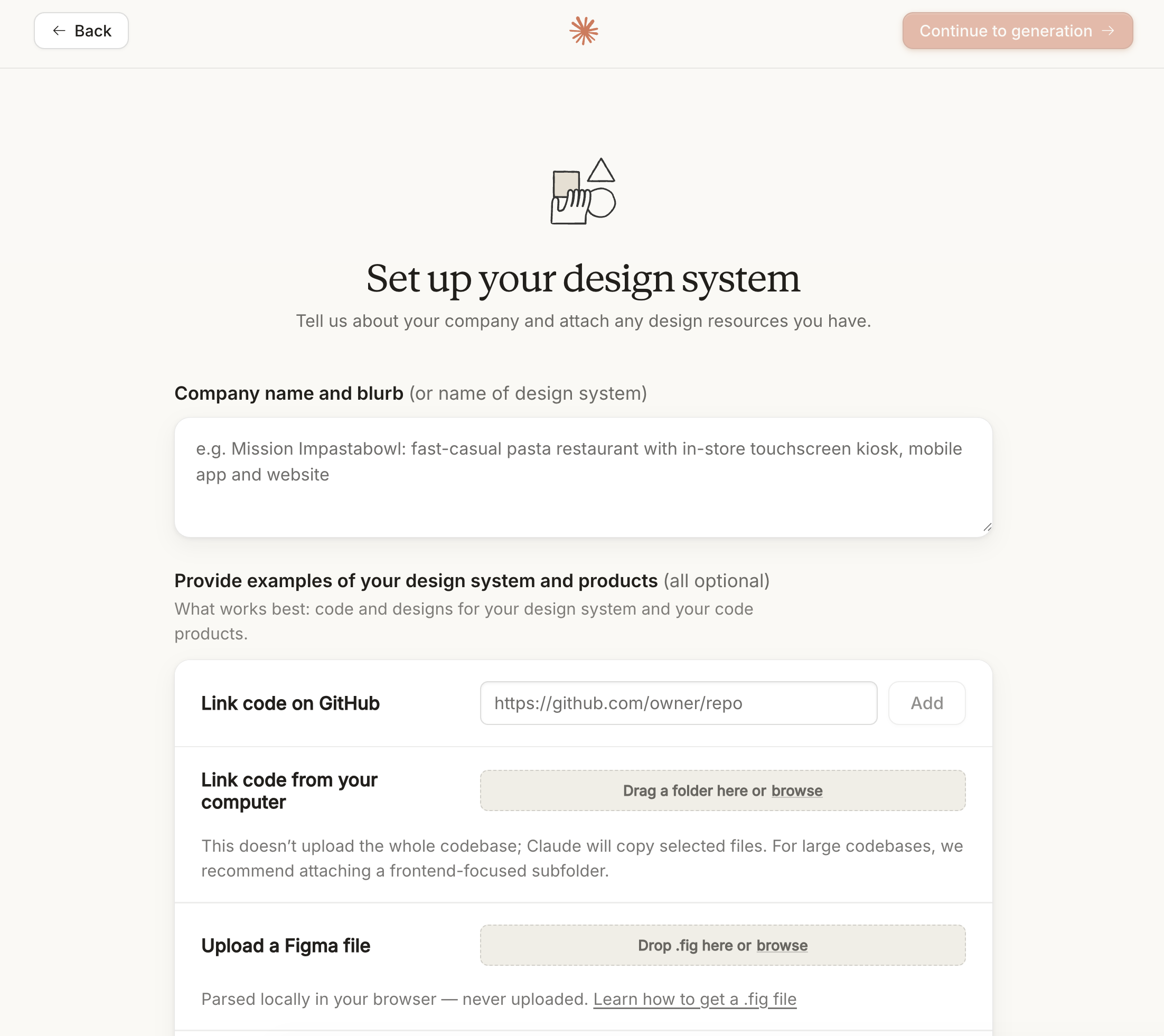 Codebase. Si punta Claude direttamente al repository, e il sistema estrae design token, componenti, pattern. Questa è la porta che i team tecnici apprezzeranno di più: il design system smette di essere documentato a parte, è il codice stesso.